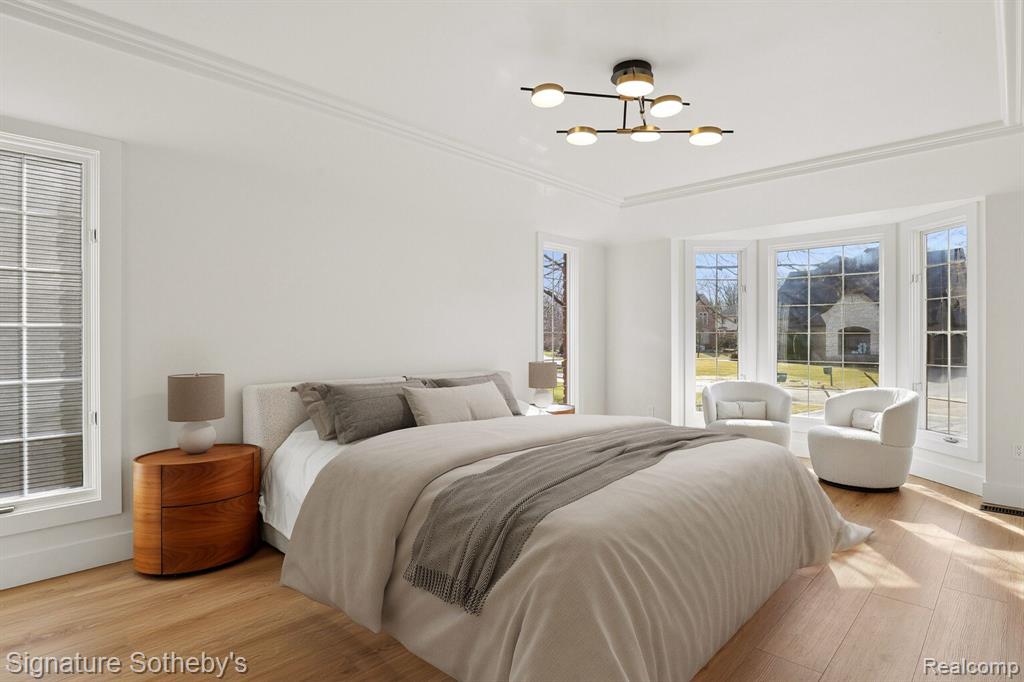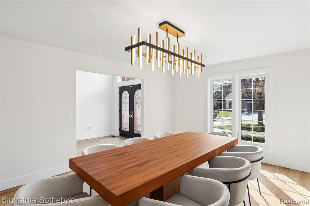 Spanning 4,453 square feet with 5 bedrooms and 5.1 bathrooms, this completely renovated residence is set within one of Rochester Hills’ most desirable gated communities, offering a refined blend of modern updates and thoughtful design. Wide plank hardwood flooring runs throughout the home, creating a cohesive and elevated interior.